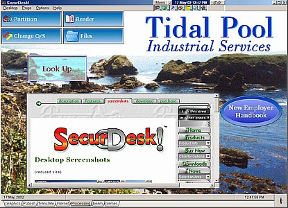 SecurDesk! kết hợp 4 module chính: Desktop, Task Manager, File Manager và Administration Manager. Chúng cùng nhau sẽ cung cấp cho bạn rất nhiều lựa chọn, có thể dùng độc lập hoặc trong kết nối với các phương pháp bảo mật khác, để quản lý truy cập vào các file và cài đặt quan trọng, thay thế Explorer.exe, kiểm tra xem ai đang sử dụng máy của bạn, ẩn thông tin không liên quan khỏi một số người,...
