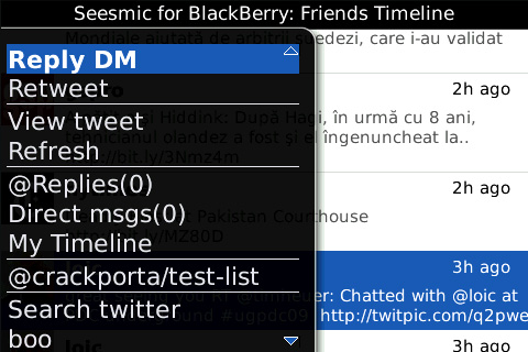 Seesmic for BlackBerry cung cấp khả năng hiển thị cập nhật hiện trạng của bạn bè trong giao diện giống và được bắt nguồn từ các ứng dụng của Blackberry. Seesmic for BlackBerry sẽ nhóm tất cả mốc thời gian của Twitter vào một ứng dụng đơn giản. Nó cho phép bạn tạo và hiển thị các tìm kiếm đã dược lưu lại, hiển thị danh sách Twitter đã được tạo trên trang twitter.com, rút gọn địa chỉ URL và gửi các bức ảnh, cấu hình thông báo đối với các message và trả lời. Cho dù bạn muốn cuộn qua tất cả mốc thời gian của bạn bè, kiểm tra một tìm kiếm đã được lưu, hiển thị một danh sách hoặc muốn tìm kiếm hội thoại cá nhân với một người bạn nào đó, tất cả chỉ với một lần kích vào menu chính.