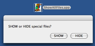 Nếu bạn là một chủ web, một nhà phát triển phần mềm, hoặc người dùng cao cấp, chắc chắn bạn sẽ thường xuyên phải chuyển giữa SHOW ALL FILES và HIDE HIDDEN FILES trên máy tính Mac. Điều này có thể hoàn thành với một vài lệnh trong UNIX... nhưng tại sao lại không tiết kiệm thời gian quý báu của bạn và sử dụng phần mềm miễn phí này? Phần mềm Show Hidden Files cho phép bạn kích chuyển giữa SHOW ALL FILES, và HIDE HIDDEN FILES.