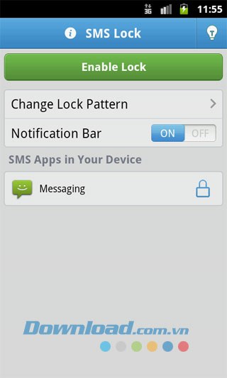 SMS Lock là một công cụ nhỏ gọn, được thiết kế để bảo vệ tin nhắn của bạn. Khóa bảo vệ được thiết kế cao hơn so với cấp độ của hệ điều hành Android nhằm cung cấp bảo vệ toàn diện cho hộp tin nhắn. Sau khi bật SMS Lock, sẽ có một khóa bảo vệ khi bạn mở hộp tin nhắn.