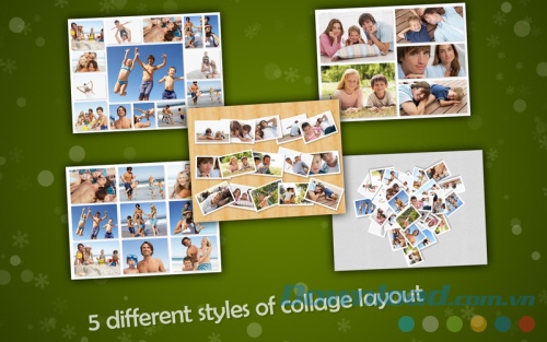 - Cung cấp 5 layout để tạo ra các hình dạng ảnh cắt dán khác nhau