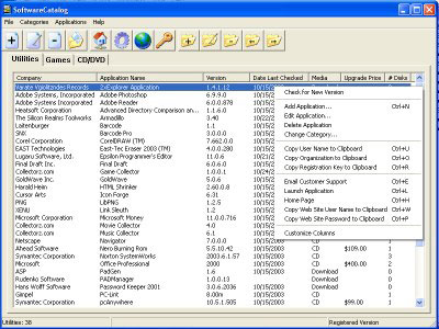 Software Catalog giúp máy tính của bạn luôn được cập nhật. Hầu hết các ứng dụng đều liên kết với các trang web có các phiên bản cập nhật của những chương trình này. Một số trang có yêu cầu đăng nhập tên người dùng, mật khẩu để có thể tải những phần mềm mới nhất. Điều này khiến việc theo dõi các phiên bản mới nhất của các phần mềm cài đặt trên máy tính của bạn trở nên khó khăn hơn. Software Catalog cung cấp tất cả các thông tin cần thiết trong việc theo dõi cập nhật các phiên bản vào một khu vực. Chương trình này sẽ lưu lại toàn bộ thông về ứng dụng, số phiên bản, thông tin đăng kí, trang web của ứng dụng, thông tin cập nhật, ngày cuối cùng bạn kiểm tra thông tin cập nhật và còn rất nhiều thông tin khác. Sau đó, Software Catalog có thể tự động điền vào khu vực đăng nhập mỗi khi mở trang web ra. Hãy để chương trình này giúp bạn cập nhật tất cả các phần mềm.