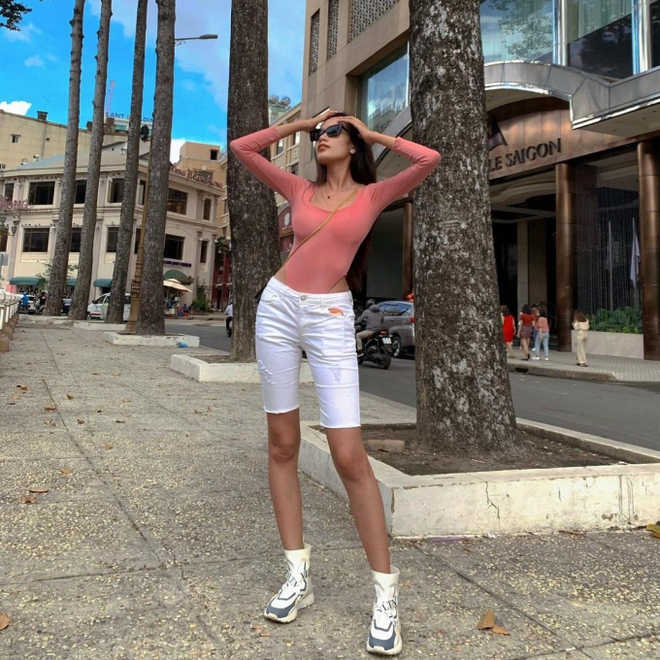 Những lần diện quần biker, tân Hoa hậu cũng khiến dân tình bất ngờ với vẻ năng động và tươi trẻ của bản thân. Với item này, cô thường ''kết thân'' cùng bodysuit hoặc áo 3 lỗ dáng ôm để khoe được 3 vòng chuẩn chỉnh đáng ngưỡng mộ.
