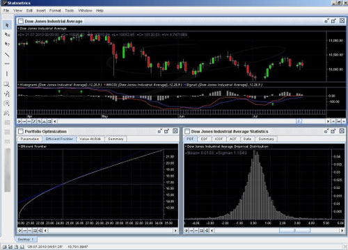 Statmetrics là một ứng dụng đa nền tảng miễn phí, cung cấp giải pháp trong việc phân tích thị trường tài chính với các tính năng phân tích công nghệ và phân tích thống kê. Các tính năng chính của Statmetrics bao gồm: Bảng – công nghệ bảng trực giác; chia tỷ lệ bảng; một số loại bảng, các công cụ vẽ thông minh; tùy biến giao diện; quản lý cửa sổ bảng. Các chỉ báo kỹ thuật: chỉ báo kỹ thuật chuẩn; tín hiệu giao dịch, giả lập thị trường thực. Phân tích danh mục: lý thuyết danh mục mới; mẫu giá tài sản. Phân tích thống kê. Cung cấp dữ liệu: Yahoo!, Finance, Google finance, Deutscher. Quản lý dữ liệu: nhập/xuất dữ liệu bên ngoài.