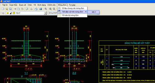 - Tự động hoá vẽ kết cấu xây dựng: móng cọc, chi tiết cọc, móng đơn, móng băng, mặt bằng kết cấu, dầm, cột, sàn, lanh tô...