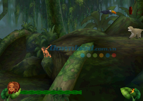 Trong khu rừng được tuyệt đẹp và đầy sức lôi cuốn cũng không kém phần nguy hiểm khi cạm bẫy rình rập khắp nơi. Đó có thể là những hố sâu, miệng núi lửa hoặc hang cọp thăm thẳm. Vì thế, người anh hùng của bạn cũng được trang bị những kỹ năng cần thiết để tồn tại. Nhân vật Tarzan của bạn sẽ phát triển từ một cậu bé và lớn dần lên theo thời gian (cấp độ mà bạn đạt được). Cùng với đó, anh chàng cũng sẽ phát triển kỹ năng và kỹ thuật để có thể đối mặt và vượt qua những mối nguy hiểm nhất trong khu rừng nhiệt đới.
