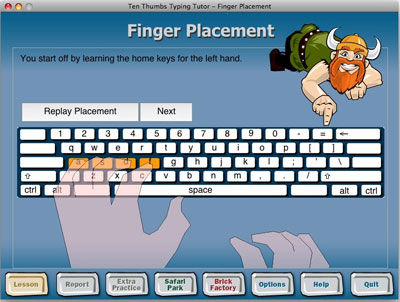 Ten Thumbs Typing Tutor là phần mềm tốt nhất để tìm hiểu cách đặt ngón tay đúng trên bàn phím. Nó có nhiều tính năng lựa chọn, nhiều trò chơi sôi động giúp bạn có thể luyện tập, bổ sung các bài học, tốc độ quản lý, cấp giấy chứng nhận kiểu gõ, điều chỉnh tốc độ gõ, …