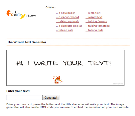 Đến với trang web fodey, bạn có thể tạo nhanh các dòng chữ động chỉ với cú click chuột. Trang web sẽ giúp bạn tạo anh Text động, bạn dễ dàng chèn vào Blog thông qua đoạn code có sẵn.