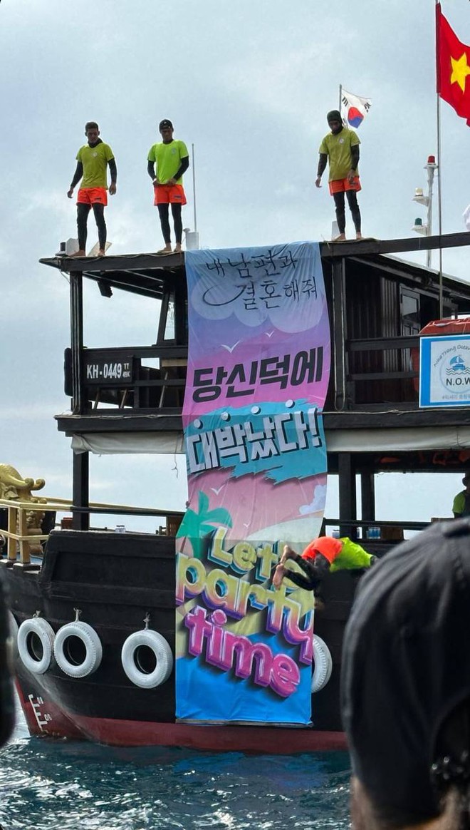 Dàn sao còn được trải nghiệm ngồi du thuyền trên vịnh biển cùng thưởng thức các tiết mục dành riêng cho đoàn phim. (Ảnh: @greengreen_j, @PMYmyWay)