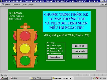 Thống kê tai nạn thương tích (Thống kê TNTT) là chương trình giúp dễ dàng thống kê tình hình tai nạn thương tích, in báo biểu tự động nhanh chóng. Ngoài ra còn có thể dùng để thống kê các bệnh tật khác, theo dõi tra cứu nhanh các bệnh nhân.