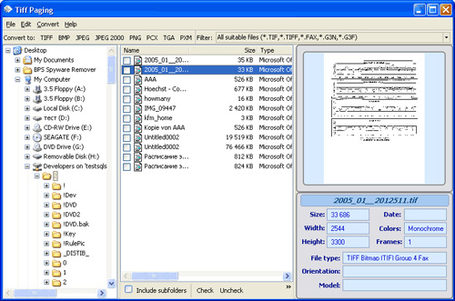 Một giải pháp toàn diện độc đáo cho tất cả những ai phải đối mặt với file TIFF. Tiff Paging có thể xuất các trang bạn muốn trong file TIFF, ví như 10 trang đầu tiên hoặc bất kì trang chẵn hoặc lẻ nào. Hệ thống template đối với file đầu ra cũng rất linh hoạt (theo ngày, số file, số trang,...).
