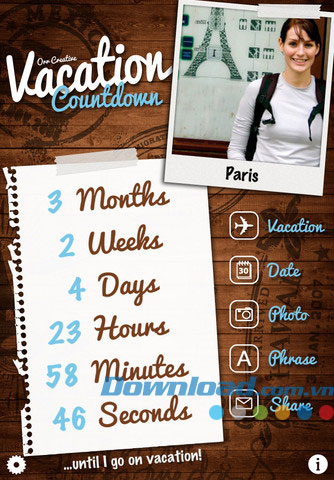 Vacation Countdown for iOS là ứng dụng đếm ngược kỳ nghỉ trên iPhone/iPad.