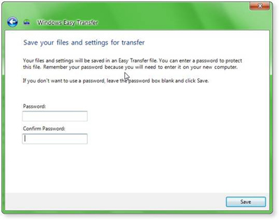 Nhập vào Password nếu bạn muốn bảo mật và chọn Save rồi chọn đường dẫn ổ đĩa để lưu lại. Kết quả là bạn có được một tập tin nén với định dạng *.MIG. và bạn chỉ cần sao chép tập tin này sang máy khác để tiến hành giải nén.