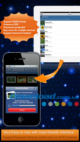- Chuyển ảnh và video với tốc độ cao ngay cả khi không có mạng WiFi và sử dụng Personal Hotspot.