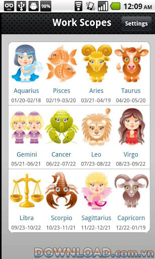 Hãy xem những nhà chiêm tinh học nói gì về vận mệnh của bạn trong ứng dụng Work Horoscopes for Android.