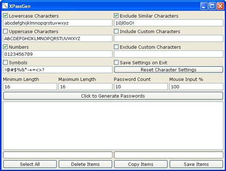 XPassGen sẽ dựa theo những hành động của chuột (di chuyển, click, kéo, …) để sinh ra 1 mật khẩu cho bạn. Vì thế mật khẩu được sinh ra sẽ hoàn toàn ngẫu nhiên và không thể nào đoán được. Phần mềm này rất có ích khi bạn có nhiều tài khoản trên mạng và muốn sử dụng những mật khẩu khác nhau để bảo mật cho chúng.