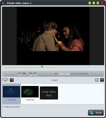 4Media Video Joiner 2 sẽ giúp bạn tách, kết hợp một số đoạn video vào một tập tin video với hiệu ứng chuyển tiếp đặc biệt. Phần mềm này hỗ trợ nhiều định dạng video đầu ra, trong đó có cả HD video như: AVI, MPEG, WMV, MP4, FLV, MKV , H.264/MPEG-4, DivX, XviD, MOV, RMVB, ASF, 3GP, DVH.264/MPEG-4 AVC (*.mp4), MPEG2 HD Video (*.mpg; *.mpeg) ...