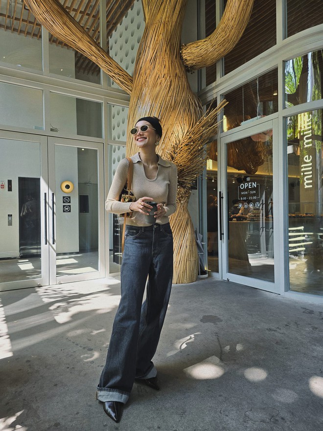 Khi diện quần jeans, Phạm Thanh Hằng thường chọn những kiểu giày như sneaker trắng, giày cao gót mũi nhọn, sandal dáng mule để hoàn thiện bộ trang phục sành điệu, tôn dáng hiệu quả.