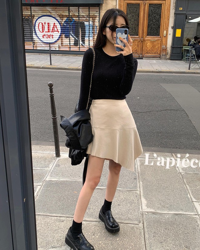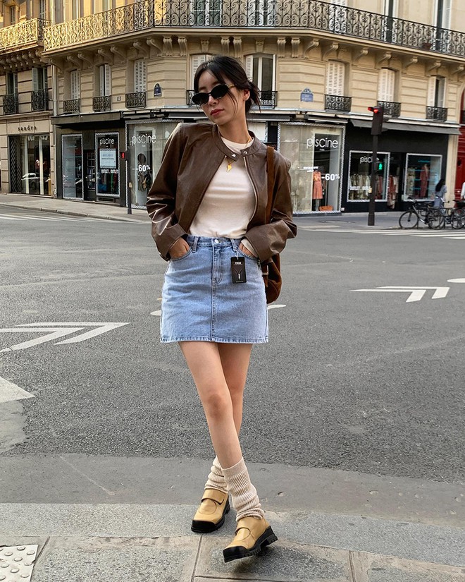 Các nàng đừng chỉ diện chân váy dài, hãy làm mới phong cách với chân váy ngắn. Mẫu chân váy này sẽ giúp "hack" dáng cao ráo và thanh thoát, ngay cả khi chị em đi giày bệt. Chân váy ngắn mang đến cho người diện nét trẻ trung và ngọt ngào nhưng cũng không kém phần sang chảnh. Chân váy ngắn kết hợp ăn ý với áo thun dài tay, áo trắng hoặc áo len mỏng. Bên cạnh đó, chị em có thể khoác ngoài áo blazer hoặc áo khoác da để tăng thêm điểm sang xịn mịn và thời thượng cho phong cách.