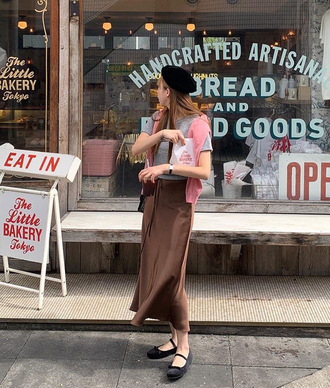 Không khó để các nàng mặc đẹp với chân váy lụa. Hãy kết hợp món thời trang này với áo len cộc tay hoặc áo cardigan mỏng, chị em sẽ có vẻ ngoài tươi trẻ, ngọt ngào. Tổng thể trang phục thêm phần yêu kiều nếu chị em tô điểm những món phụ kiện như giày Mary Jane, mũ nồi…