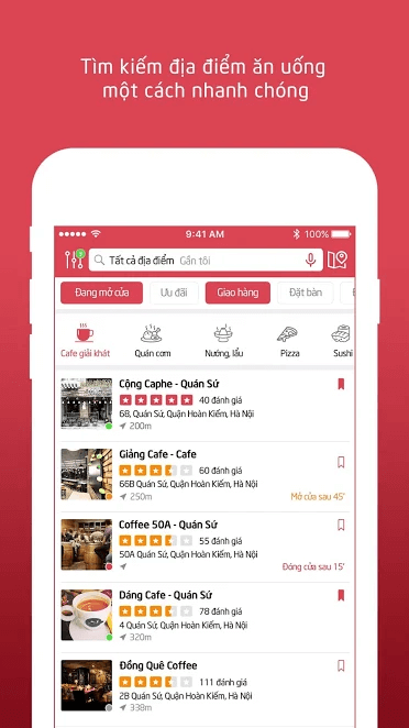 Đặt chỗ, đặt giao hàng ngay trên ứng dụng.