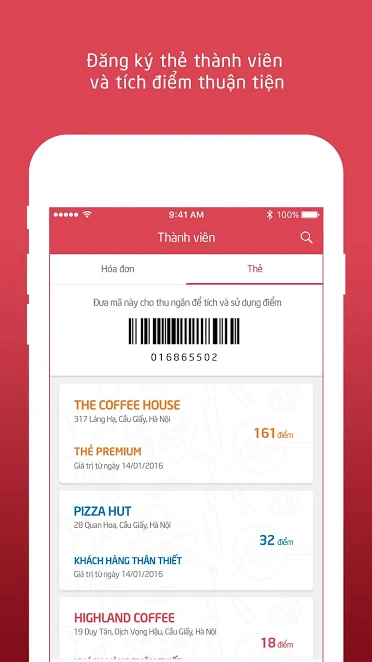 Đăng kí thẻ thành viên và tích điểm một cách thuận tiện.