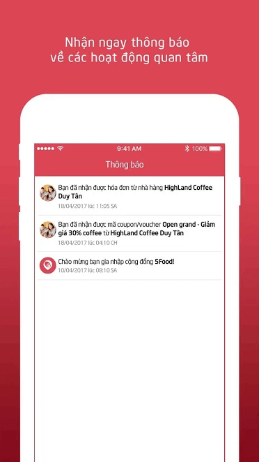 Hóa đơn dùng bữa tại các nhà hàng trong hệ thống 5Food sẽ được gửi tới điện thoại bạn ngay khi hoàn tất khâu thanh toán.