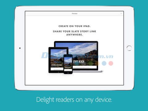 - Câu chuyện được thiết kế trên Adobe Slate sẽ hiển thị ấn tượng trên mọi thiết bị, từ điện thoại, máy tính bảng cho tới PC.