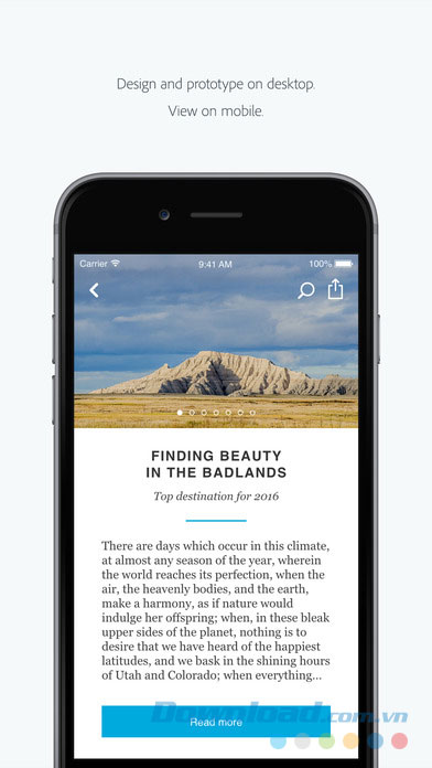 Adobe Experience Design cho iOS là ứng dụng cho phép preview prototype trên màn hình smartphone hay tablet. Bạn có thể thêm hiệu ứng chuyển cảnh và xem mọi lúc mọi nơi với thiết bị cầm tay, trong thời gian thực thông qua USB (macOS) hoặc tải từ Creative Cloud Files.