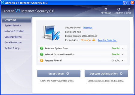 AhnLab V3 Internet Security là một giải pháp bảo mật tích hợp bảo vệ chống lại các mối đe dọa bảo mật mới nhất. Giải pháp này cung cấp các engine chống virus và chống phần mềm gián điệp cũng như giúp quản lý các mạng web, bảo mật e-mail và máy PC. Sản phẩm này đã giúp giảm đáng kể việc sử dụng nguồn tài nguyên mà không bị mất tính năng tích hợp bảo mật của nó.