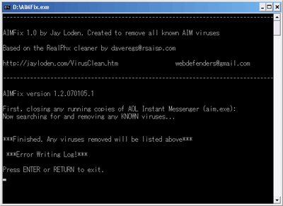 AIM FIX được tạo ra để diệt tất cả virus AIM với một công cụ diệt virus được cải tiến. AIM Fix được thiết kế để chấm dứt quá trình hoạt động của virus, xóa các file và các khóa registry do virus tạo ra.