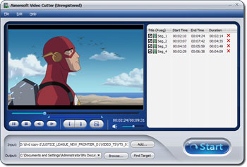 Với chương trình này, bạn có thể dễ dàng cắt tất cả file video của bạn. Ngoài ra, Aimersoft Cut Video cho bạn xem trước video và điều chỉnh các thiết đặt cho việc cắt như là thời điểm bắt đầu, thời điểm kết thúc và độ dài file. Bạn có thể cắt một file lớn thành nhiều file nhỏ hơn như bạn muốn không chỉ với chất lượng cao mà còn với tốc độ nhanh chóng.