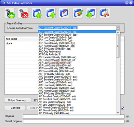 AIO Video Converter là một phần mềm miễn phí, công cụ đắc lực để chuyển đổi qua lại các định dạng video khác nhau bao gồm DVD, MPEG-1/2/4, VCD, AVI, SVCD, MOV, RM, WMV, 3GP. Ngoài việc chuyển đổi qua lại các định dạng video, phần mềm này cũng cung cấp một số tính năng chuyển đổi định dạng video sang tất cả các định dạng âm thanh phổ biến, bao gồm MP2, MP3, AC3, RA, hay M4A.