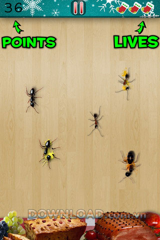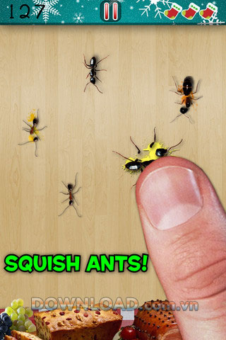 Ant Smasher Christmas, một game dành cho iOS lẫn Android. Cách chơi của nó rất đơn giản, những chú kiến sẽ bò khắp màn hình để tìm đến mục tiêu của chúng là những chiếc bánh, hoa quả ở phía bên kia của màn hình. Nhiệm vụ của bạn là tiêu diệt những chú kiến này để chúng không thể chạm vào chỗ bánh, hoa quả đó.