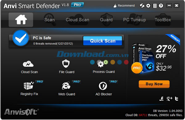 Anvi Smart Defender Pro là ứng dụng hoàn hảo, được thiết kế để giúp bạn phát hiện, gỡ bỏ và bảo vệ máy tính của mình trước các phần mềm độc hại, trojan, rootkit, phần mềm gián điệp...