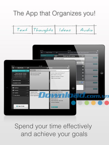 Như chúng ta đã biết, có một câu nói nổi tiếng là "điều gì quan trọng thì thường không khẩn cấp và những gì khẩn cấp thì không quan trọng". Trong cuộc sống, chúng ta thường phải quản lý rất nhiều danh sách nhiệm vụ thuộc nhiều lĩnh vực khác nhau và ở cấp độ ưu tiên khác nhau. Vì vậy, Any To Do for iPad Lite hoạt động như một trợ thủ đắc lực, giúp bạn tập trung vào những việc cần làm và quan trọng hơn trước tiên, cho phép bạn phân bổ thời gian một cách hiệu quả và đạt được mục tiêu đã đề ra.
