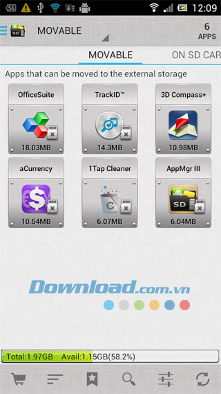 - Hiển thị tất cả các ứng dụng có thể chuyển sang thẻ SD và chuyển chúng