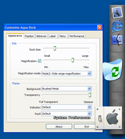 Nhằm đáp ứng nhu cầu “trang điểm” cho Windows thêm bóng bẩy, một số phần mềm giả làm menu giống như máy Mac đã ra đời, trong đó phải kể đến Aqua Dock như một đại diện xuất sắc.