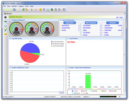 AthTek NetWalk Enterprise Edition 1.3.51 có lẽ là ứng dụng đơn giản nhất để theo dõi một mạng lưới mà không cần người dùng phải có những kiến thức chuyên sâu về các dòng lệnh phức tạp cũng như các nút mạng. Ứng dụng cung cấp một đồ thị hoạt động mạng để giúp người dùng có thể theo dõi. Với AthTek, bạn có thể thực hiện giám sát mạng đa giao thức, nắm bắt các gói tin, các hoạt động kiểm tra của tất cả các kết nối từ một bản đồ ma trận và kiểm tra thông tin DNS, POP3, SNMP, NET BIOS, VLAN và nhiều hơn nữa.