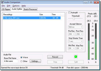 Audio Companion là một phần mềm ghi âm để ghi lại âm thanh từ các đầu vào của card âm thanh, với chức năng autosplit để phát hiện sự bắt đầu và kết thúc của mỗi file âm thanh và một tùy chọn CD Ripper để lấy âm thanh từ đĩa CD. Với thẻ "Batch processor" bạn có thể chuyển đổi các file âm thanh thành nhiều định dạng khác nhau, tăng âm lượng các file đã ghi được và chuyển đổi các file MP3 ghi lại được thành file Wave. Cả ba thẻ "CD Ripper", "Audio Splitter" và "Batch processor" đều cho phép bạn lưu trực tiếp thành các định dạng âm thanh như MP3, WAV, WMA hay OGG Vorbis.