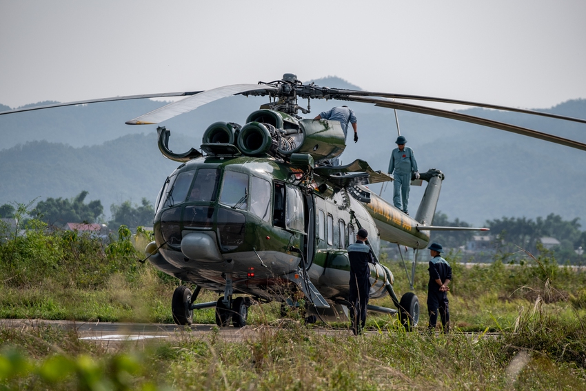 Chiều 6/5, các đơn vị kĩ thuật chuẩn bị kĩ càng các công tác liên quan đến an toàn bay, kỹ thuật hàng không, hậu cần, kỹ thuật thông tin, đảm bảo về điều kiện khí tượng... tham gia bay kéo cờ trong buổi Tổng duyệt Lễ kỷ niệm 70 năm Chiến thắng Điện Biên Phủ. Tổng số trực thăng tham gia làm nhiệm vụ tại Lễ kỷ niệm 70 năm Chiến thắng Điện Biên Phủ gồm 12 chiếc, trong đó 11 chiếc bay chính thức, 1 chiếc dự phòng và làm công tác cứu hộ cứu nạn