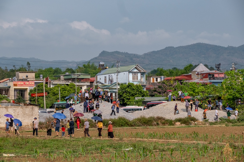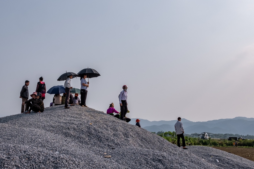 Càng về chiều, lượng người hiếu kì kéo đến khu vực bên hông của Cảng hàng không Điện Biên càng nhiều hơn.