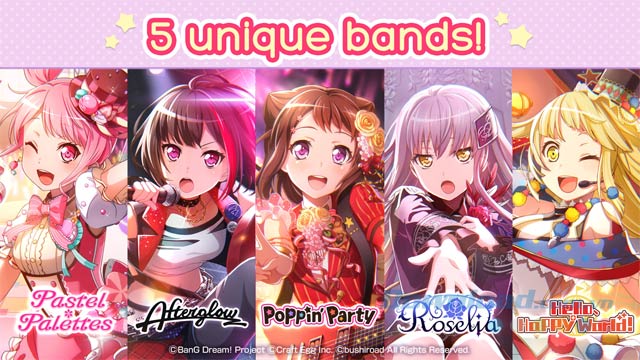 BanG Dream! Girls Band Party! cho iOS là game âm nhạc cho di động có sự góp mặt của các ngôi sao anime BanG Dream, Poppin’s Party. Người chơi điều khiển ban nhạc nữ này và tham gia vào hành trình trở thành ngôi sao của họ. Đối với những ai đã xem bộ phim BanG Dream thì sẽ không còn xa lạ gì với Kasumi và những người bạn nữa, nhưng trong tựa game này, họ sẽ cùng tham gia với 4 bạn nhạc thú vị khác là Afterglow, Roselia, Pastel*Palettes, và Hello, Happy World.