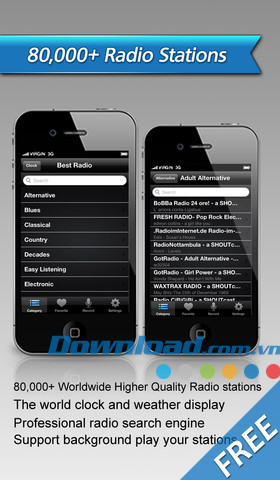 Nếu bạn thích các loại nhạc (R & B, Pop, Rock, Jazz, đồng quê, Folk, ngôn ngữ quốc tế, nhạc điện tử, nhạc cổ điển, Latin, nhạc cổ, theo lứa tuổi, nhạc Giáng sinh...) hoặc muốn nghe hàng ngàn kênh Radio chất lượng cao trên toàn thế giới, hãy tải xuống ứng dụng Best Radio Free ngay hôm nay.