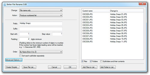 Better File Rename 5.21 là một tiện ích mà sẽ rất hữu ích khi bạn muốn đổi tên nhiều file nhanh chóng. Better File Rename là một trình tiện ích mở rộng cho Windows Explorer, nó cho phép người dùng nhanh chóng đổi tên hàng loạt file. Tiện ích mạnh mẽ, dễ dàng sử dụng này biến đổi các thao tác chán ngắt và tốn thời gian của việc thay đổi tên nhiều file thành một vấn đề đơn giản. Better File Rename là một ý tưởng thích hợp cho những người quản trị web, người mà muốn chuyển các file từ UNIX, các máy ảnh kỹ thuật số, cũng như cho tất cả những người sử dụng khác mà làm việc với một số lượng lớn các file, chẳng hạn như bộ sưu tập ảnh.