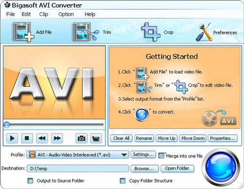- Chuyển đổi sang AVI: Bigasoft AVI Converter có thể giúp bạn chuyển đổi sang AVI từ bất kì file đa phương tiện nào.