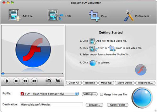 Bigasoft FLV Converter for Mac, phần mềm chuyển đổi Youtube mạnh mẽ, được thiết kế chuyên biệt để chạy trực tuyến các file video như Youtube video, MySpace video, FLV, đặc biệt các file video HD, bất kì nơi nào cho người dùng Mac.