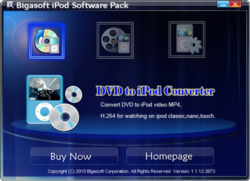 Bigasoft iPod Software Pack, gói phần mềm giảm giá lý tưởng và rất chuyên nghiệp dành cho iPod, kết hợp Bigasoft DVD to iPod Converter, Bigasoft iPod Video Converter và Bigasoft iPod Transfer thành một gói phần mềm dành riêng cho người dùng iPod.