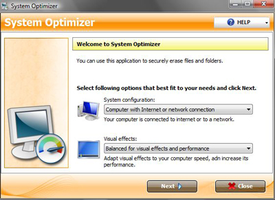 - System Optimizer: thực hiện tối ưu hệ thống theo những sự lựa chọn tùy biến của người dùng theo hai phân loại riêng: hệ thống và hiệu ứng giao diện.