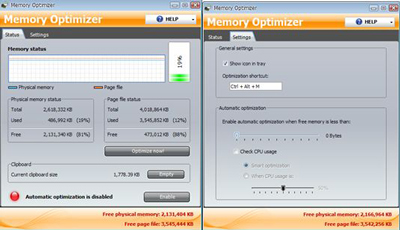 + Trên thẻ Settings có thể thiết lập một số tùy biến khác như: hiển thị tình trạng bộ nhớ trên System Tray (để có thể tới ưu RAM nhanh bằng cách nhấp phải chuột vài icon này), điều chỉnh mức độ tự động thực hiện công việc Optimize Ram khi bộ nhớ CPU xuống thấp đến bao nhiêu phần trăm (bằng cách kéo thanh trượt tương ứng), xem hình 5.